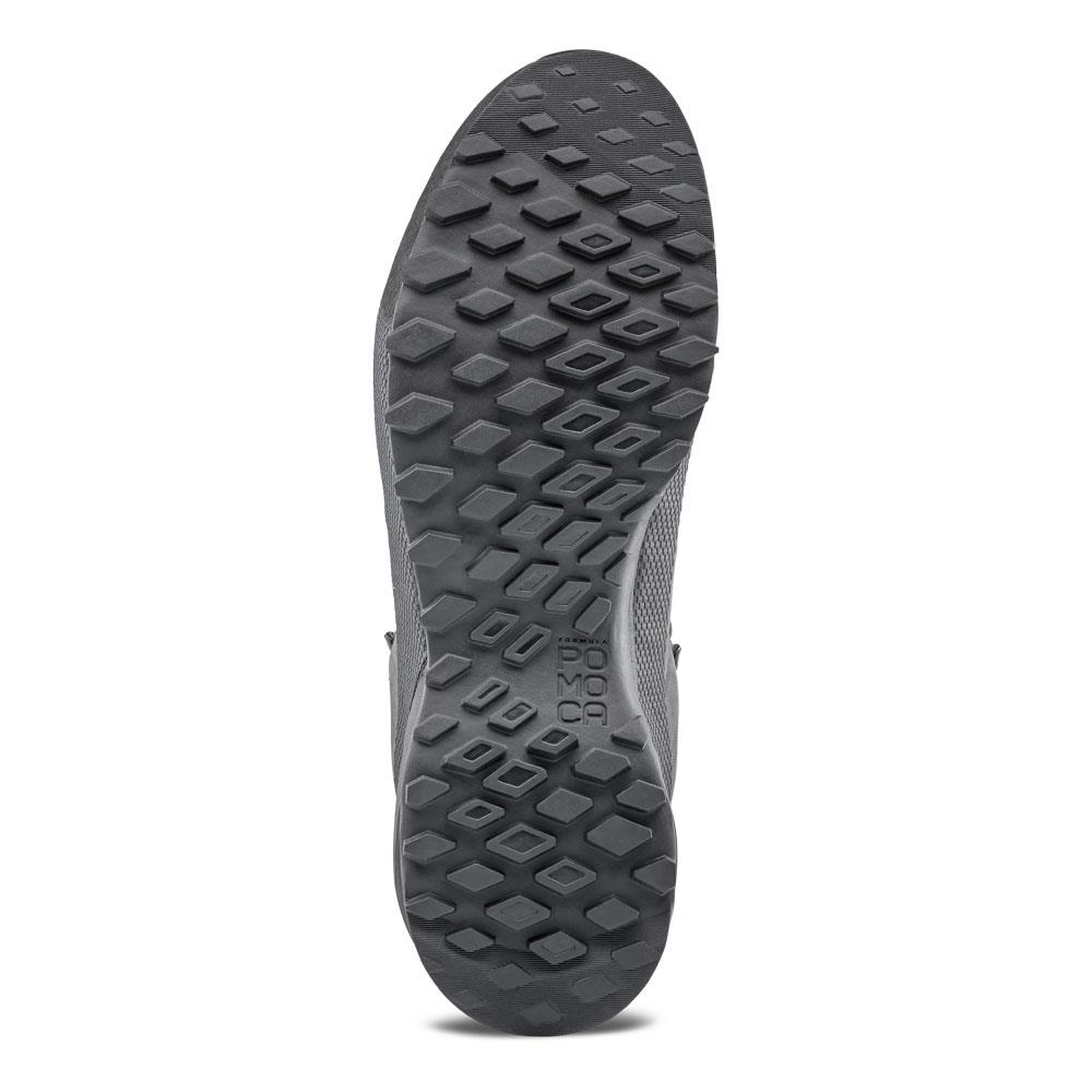 Podeszwa zewnętrzna POMOCA® z strefą wspinaczkową ma przyczepną mieszankę gumową zapewniającą tarcie zarówno w suchych, jak i mokrych warunkach. Dzięki sznurowaniu wspinaczkowemu i wkładce C.F.F. (Custom Fit Footbed) można dostosować buty i zmniejszyć ich objętość, aby uzyskać większą precyzję.