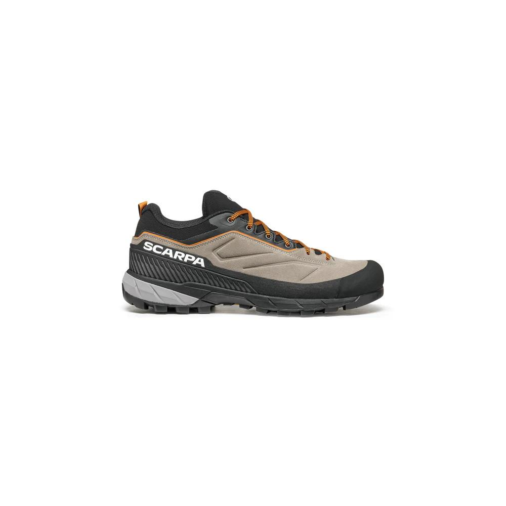 Scarpa RAPID XT to wygodne skórzane buty o prostym designie, odpowiednie do podejść, wędrówek szlakami i lekkich wycieczek górskich. Każdy szczegół został przemyślany, aby zapewnić przyczepność, komfort i ochronę, np. odporny na ścieranie rant ochronny z TPU na całym obwodzie. Podeszwa to Vibram® MegaGrip z strefami wspinaczkowymi na palcach i systemem hamulcowym z tyłu, zapewniającym stabilność i przyczepność. Innowacyjny kształt, szeroki i ergonomiczny w okolicy palców, został zaprojektowany tak, aby dopasować się do kształtu stopy.