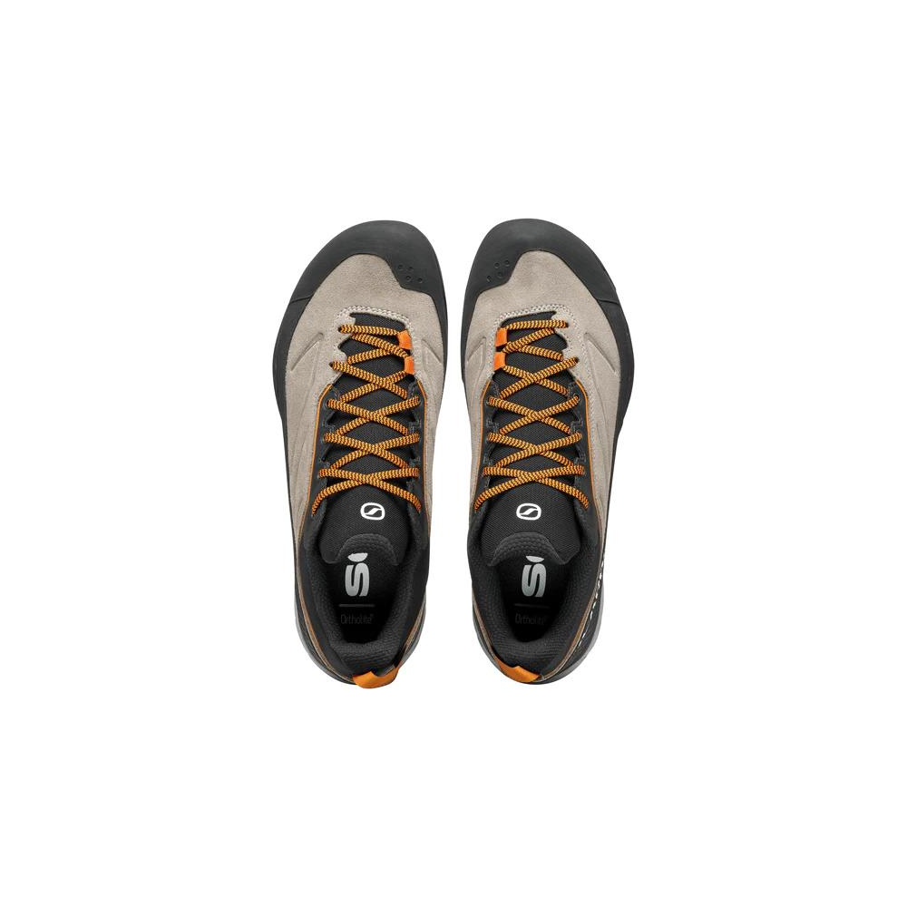 Scarpa RAPID XT to wygodne skórzane buty o prostym designie, odpowiednie do podejść, wędrówek szlakami i lekkich wycieczek górskich. Każdy szczegół został przemyślany, aby zapewnić przyczepność, komfort i ochronę, np. odporny na ścieranie rant ochronny z TPU na całym obwodzie. Podeszwa to Vibram® MegaGrip z strefami wspinaczkowymi na palcach i systemem hamulcowym z tyłu, zapewniającym stabilność i przyczepność. Innowacyjny kształt, szeroki i ergonomiczny w okolicy palców, został zaprojektowany tak, aby dopasować się do kształtu stopy.