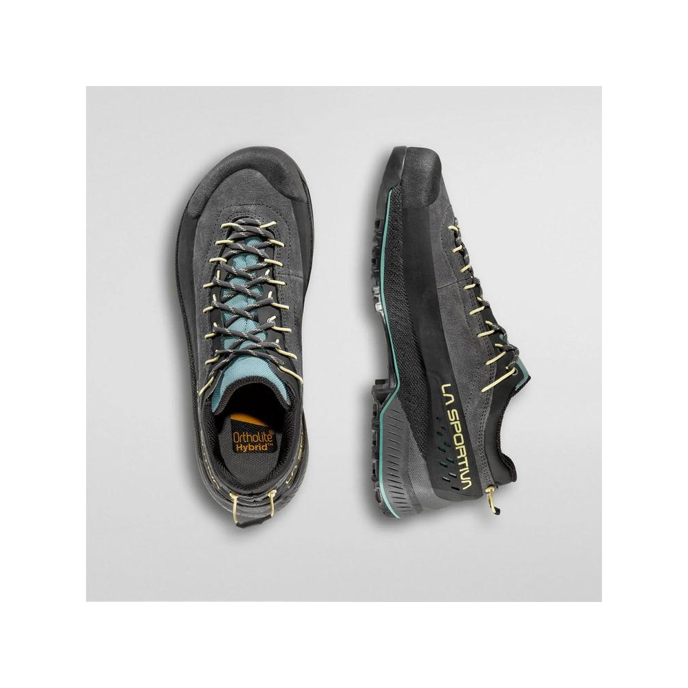 La Sportiva TX4 Evo Woman to skórzany niski but podejściowy zaprojektowany dla kobiet, aby zagwarantować maksymalną stabilność i przyczepność nawet w najtrudniejszym terenie. Idealny do technicznych podejść i łatwych tras wspinaczkowych, oferuje niezrównany komfort dzięki materiałom tworzącym cholewkę i przestronną konstrukcję wewnętrzną. Bieżnik z mieszanką Vibram® MegaGrip i opatentowaną strukturą bloków Impact Brake System™ zapewnia maksymalną stabilność podczas schodzenia i doskonałą kontrolę trakcji podczas wspinaczki. Duża strefa Climbing Zone na palcach gwarantuje precyzję i doskonałą przyczepność podczas pokonywania trudniejszych odcinków szlaku. Specjalna podeszwa środkowa z opatentowaną wkładką Resole Platform™ umożliwia wymianę podeszwy TX4 Evo bez uszczerbku dla wydajności i komfortu. Resolowanie obuwia oznacza wydłużenie jego cyklu życia, a tym samym zmniejszenie ilości odpadów.