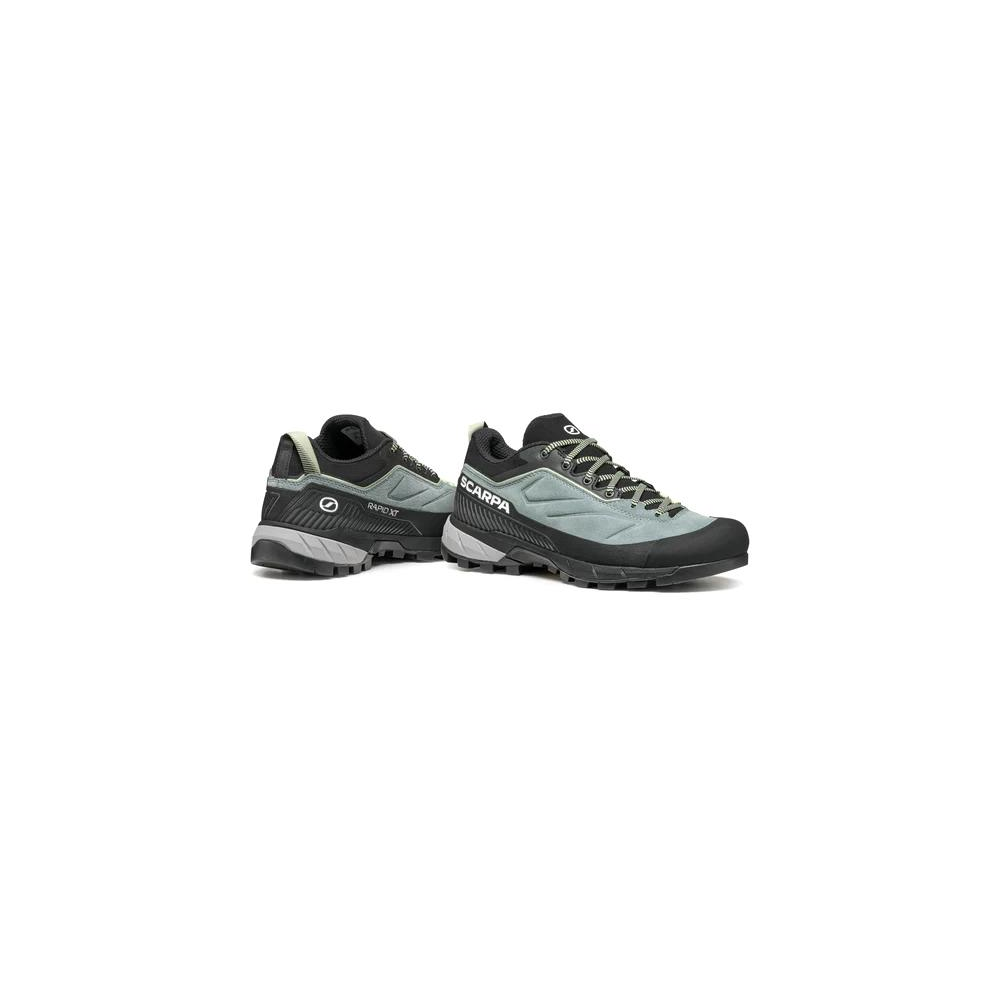 Scarpa RAPID XT to wygodne skórzane buty o prostym designie, odpowiednie do podejść, wędrówek szlakami i lekkich wycieczek górskich. Każdy szczegół został przemyślany, aby zapewnić przyczepność, komfort i ochronę, np. odporny na ścieranie rant ochronny z TPU na całym obwodzie. Podeszwa to Vibram® MegaGrip z strefami wspinaczkowymi na palcach i systemem hamulcowym z tyłu, zapewniającym stabilność i przyczepność. Innowacyjny kształt, szeroki i ergonomiczny w okolicy palców, został zaprojektowany tak, aby dopasować się do kształtu stopy.