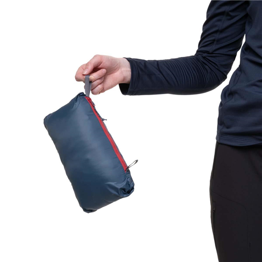 Obecność zintegrowanego, dopasowanego kaptura zapewnia dodatkową ochronę przed zimnem. Centralny zamek izolowany jest przegrodą, co jeszcze bardziej wpływa na zachowanie ciepła. Kieszenie umożliwiają schowanie najpotrzebniejszych rzeczy, a dzięki występowaniu zamka, możliwe jest także przechowywanie cenniejszych przedmiotów. Niewielka waga produktu uzyskana dzięki wykorzystaniu materiału Earthrise 30D sprawia, że plecak, w którym znajdzie się kurtka, nie zyskuje dodatkowych kilogramów.