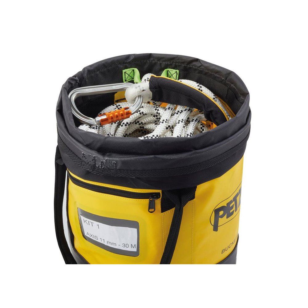 Wytrzymały worek BUCKET 15 pozwala na schowanie do 45 metrów liny o średnicy 11 mm. Worek sztywny, który zachowuje swój kształt nawet jeśli jest pusty, dla łatwiejszego dostępu do środka. Posiada zewnętrzną kieszeń na przedmioty osobiste oraz strefę do oznaczeń, by szybko zidentyfikować zawartość worka. Konstrukcja z TPU o dużej wytrzymałość pozwala na regularne użytkowanie. Występuje w trzech kolorach: żółtym, czerwonym i czarnym.