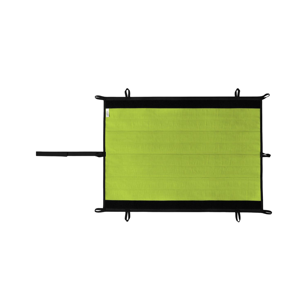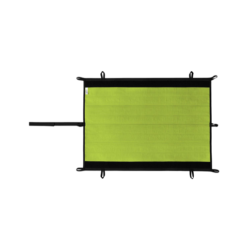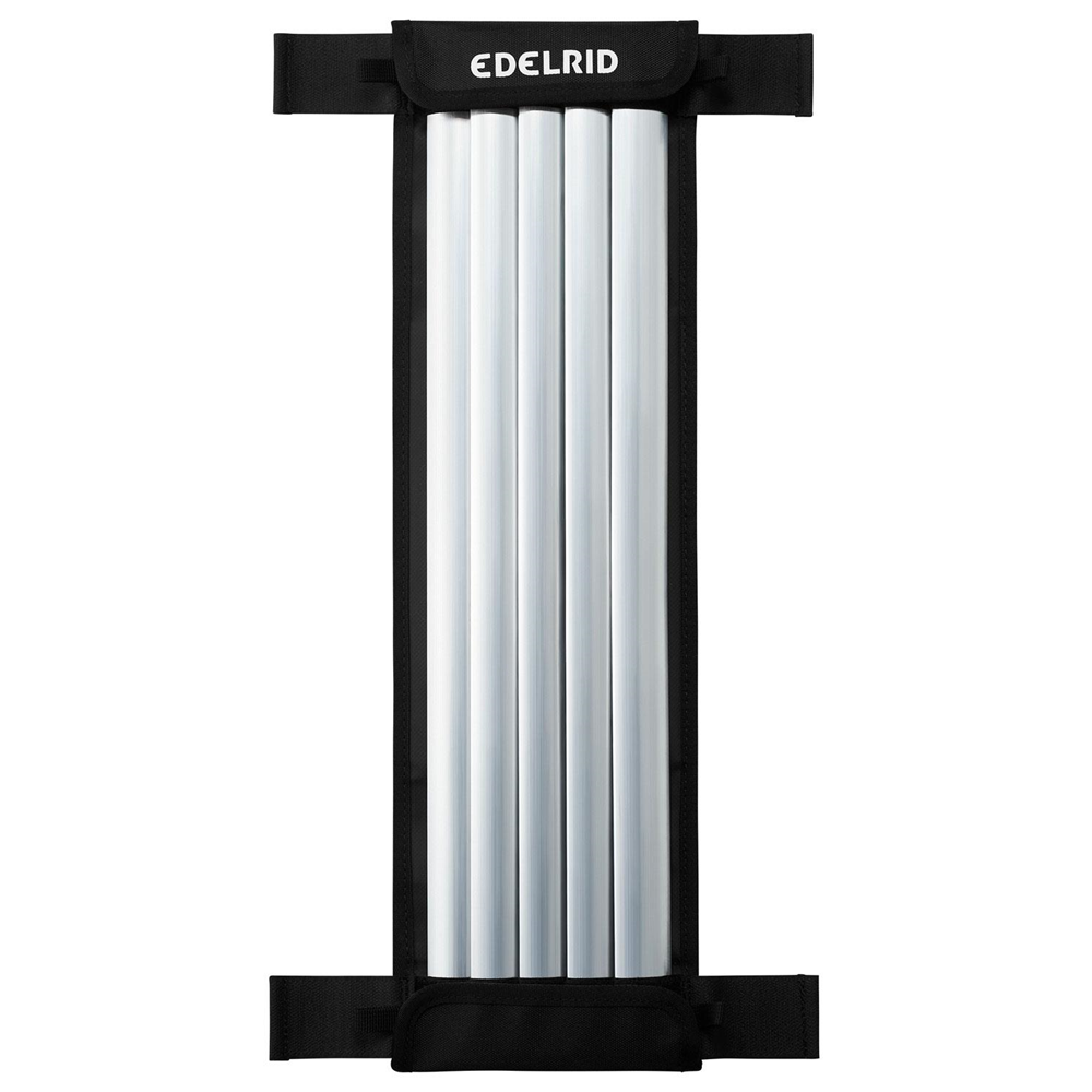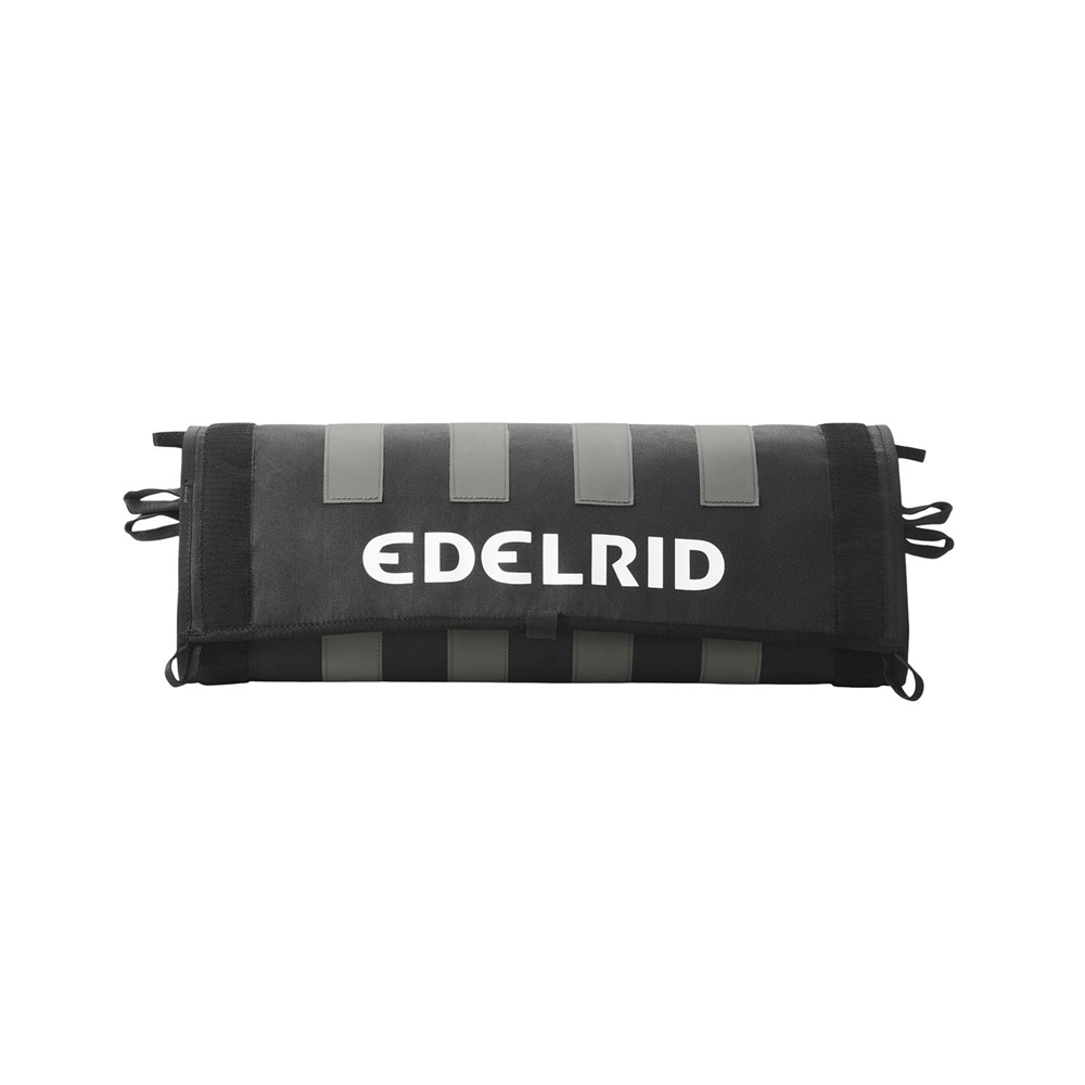 Najlepsza ochrona liny w każdej sytuacji – tego właśnie zapewnia mata ochronna Edelrid PROTECTOR MAX. W zależności od miejsca zastosowania, przebiegu liny i materiału, matę można dostosować tak, aby zawsze zapewniała idealną ochronę liny i konstrukcji. Podstawowa konstrukcja jest tak prosta, jak genialna: elastyczna mata tekstylna z wytrzymałej mieszanki poliestru i poliamidu z wewnętrzną pianką w połączeniu z pięcioma wymiennymi żebrami aluminiowymi (dostępnymi także oddzielnie jako PROTECTOR MAX SHIELD). Żebra aluminiowe mają wzmocnioną geometrię, dzięki czemu pozostają stabilne nawet przy dużych obciążeniach i nie odkształcają się. Można je łatwo umieścić i przemieszczać na macie za pomocą zapięcia na rzep. Zarówno mata, jak i element SHIELD mogą być używane oddzielnie – w zależności od konkretnego scenariusza zastosowania. W ten sposób matę ochronną można również ułożyć w formie węża (wzdłużnie i poprzecznie) wokół liny. Można również połączyć ze sobą kilka mat lub zamocować dwa elementy SHIELD modułowo na jednej macie, np. w celu ochrony liny podczas przechodzenia przez mur z podwójnym 90-stopniowym odbiciem.