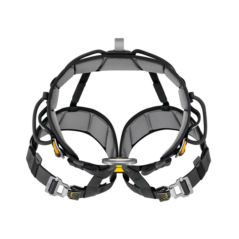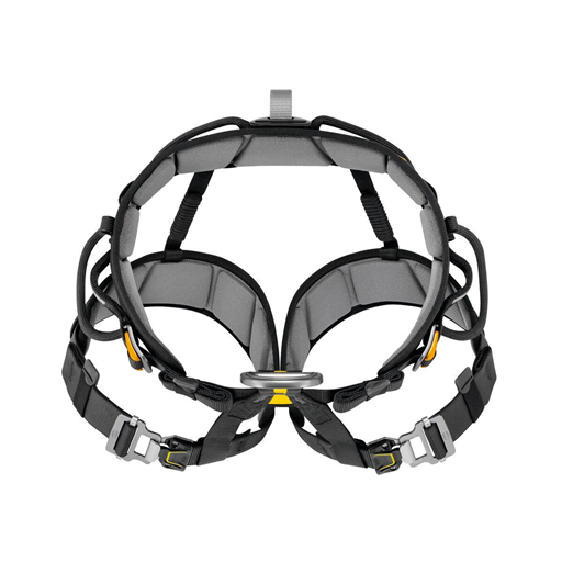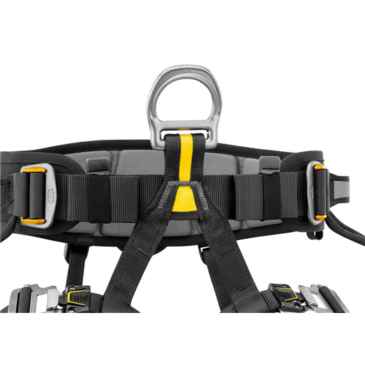 przedni, metalowy punkt wpinania uprzęży rozkłada obciążenie pomiędzy pasem a