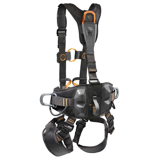 Skylotec Ampuri Wind to ergonomiczna uprząż zabezpieczająca przed upadkiem i pozycjonująca podczas pracy, z podwójnie certyfikowanym punktem mocowania do wspinaczki i siedzenia oraz wzmocnioną, odporną na ścieranie ochroną pleców – przeznaczona do pracy na turbinach wiatrowych, słupach i drabinach.