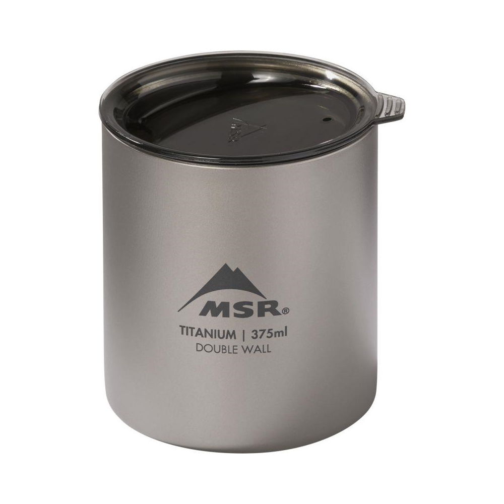 Tytanowy, ultralekki kubek z podwójnymi ściankami i pokrywką. Podwójne ścianki utrzymują ciepło lub chłód napojów. Przezroczysta pokrywka posiada otwór do picia.