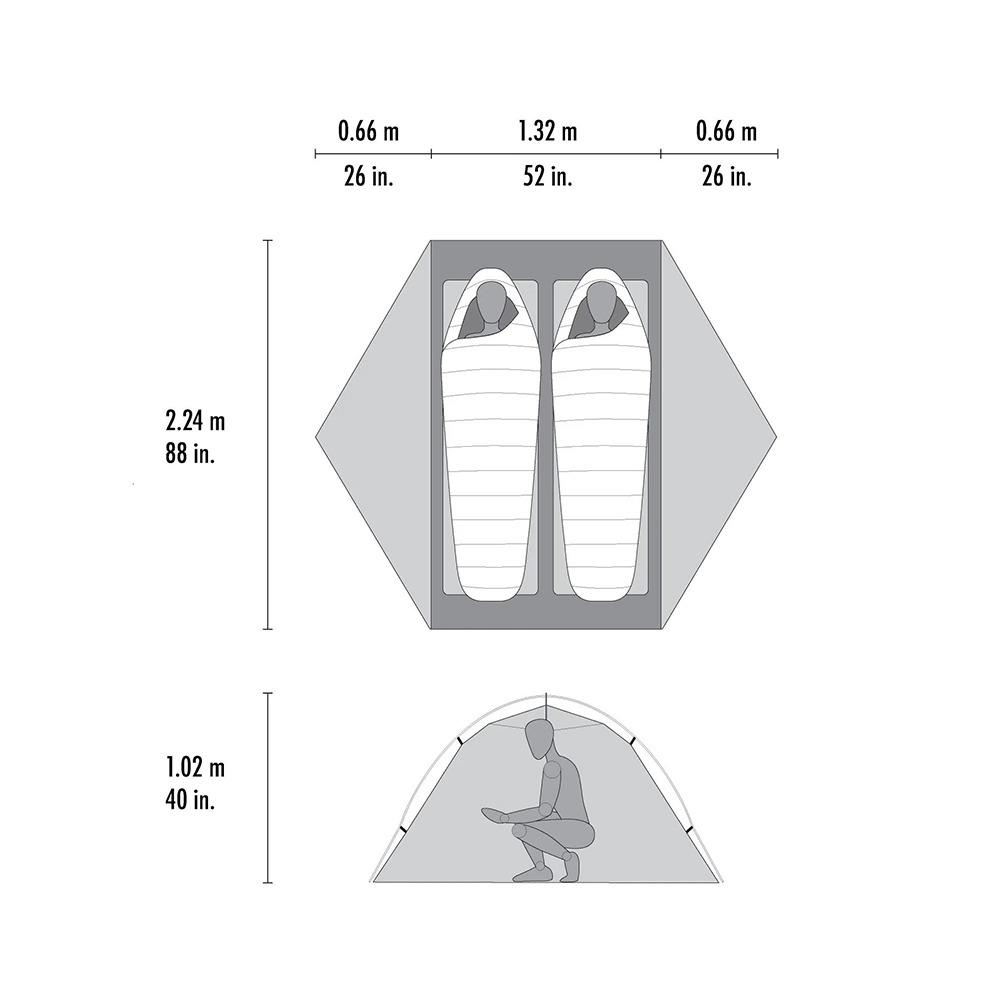 MSR Hubba Hubba™ LT 2 to nowoczesny, ultralekki namiot trekkingowy zaprojektowany z myślą o dwuosobowych wyprawach trekkingowych, rowerowych i podróżach w zmiennych warunkach pogodowych. Oferuje wyjątkowo dużo przestrzeni jak na swoją wagę, doskonałą wentylację oraz niezawodną ochronę przed deszczem. To idealny wybór dla osób, które szukają lekkiego namiotu turystycznego 2-osobowego bez kompromisów w kwestii komfortu i trwałości. Prostokątny układ podłogi bez zwężeń pozwala wygodnie korzystać z nowoczesnych, szerokich mat do spania, a dwa duże przedsionki zapewniają miejsce na plecaki i sprzęt. Przemyślana konstrukcja i wysokiej jakości materiały sprawiają, że Hubba Hubba LT 2 sprawdzi się zarówno na weekendowych wypadach, jak i podczas dłuższych wypraw w teren.