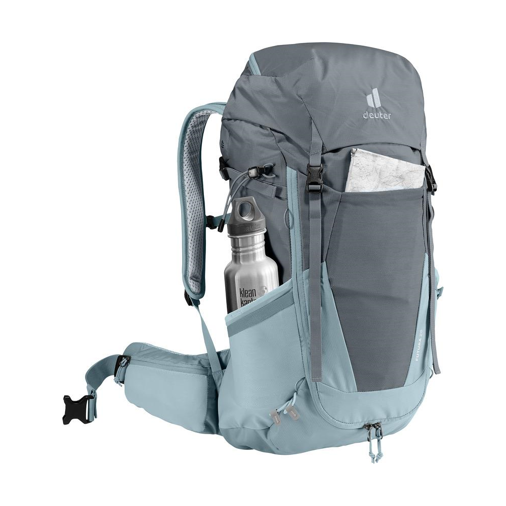 Ten lekki, techniczny plecak idealnie nadaje się na bardziej sportowe, jednodniowe wędrówki: system nośny Aircomfort jest niezwykle wygodny, a nowa siateczka zapewnia maksymalny przepływ powietrza w okolicach pleców. Efektem jest o 25% mniejsze pocenie się, a co za tym idzie, lepsza wydajność. Elastyczna siatkowa kieszeń przednia doskonale nadaje się do wietrzenia mokrych ubrań w ruchu (na przykład po kąpieli w górskim strumieniu). Główny materiał serii Futura wykonany jest z materiału z certyfikatem bluesign®.