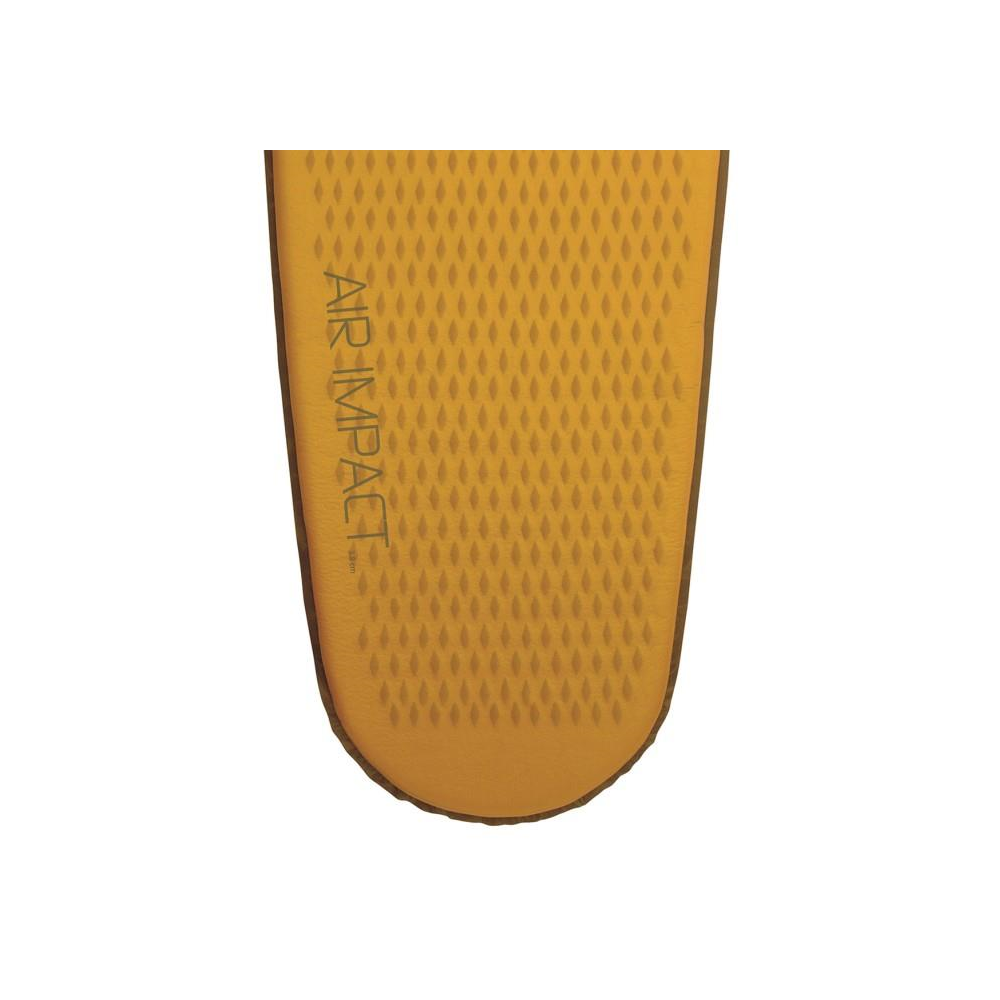 Air Impact 38 jest doskonałym rozwiązaniem podczas noclegów pod namiotem. Całość jest stosunkowo lekka, co dobrze wpływa na możliwości transportu. Mata została wykonana z nylonu tkanego w technice ripstop. Jego pokrycie TPU wzmacnia całość oraz sprawia, że trudniej namaka. Model ten posiada współczynnik R-Value na poziomie 3.1, co oznacza, że będzie zapewniał odpowiednią izolację od podłoża w temperaturze nie niższej niż -4°C. Perforacja pianki to rozwiązanie, dzięki któremu mata cechuje się niższą wagą. Możesz więc zdecydowanie łatwiej ją przetransportować. O łatwość jej napełnienia powietrzem dba z kolei specjalny zawór. Dzięki niemu powietrze dostające się do wnętrza jest odpowiednio dystrybuowane do komór, które podczas snu podtrzymują sylwetkę.