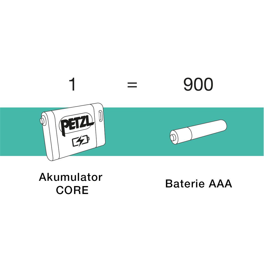 Petzl CORE - akumulator litowo-jonowy o pojemności 1250 mAh do latarek czołowych HYBRID: TIKKINA, TIKKA, ACTIK, ARIA, IKO gwarantujący dużą wydajność, nawet w niskich temperaturach. Jest ładowany bezpośrednio przez wtyczkę USB-C. Ekonomiczne i ekologiczne rozwiązanie jako główne lub zapasowe źródło energii.