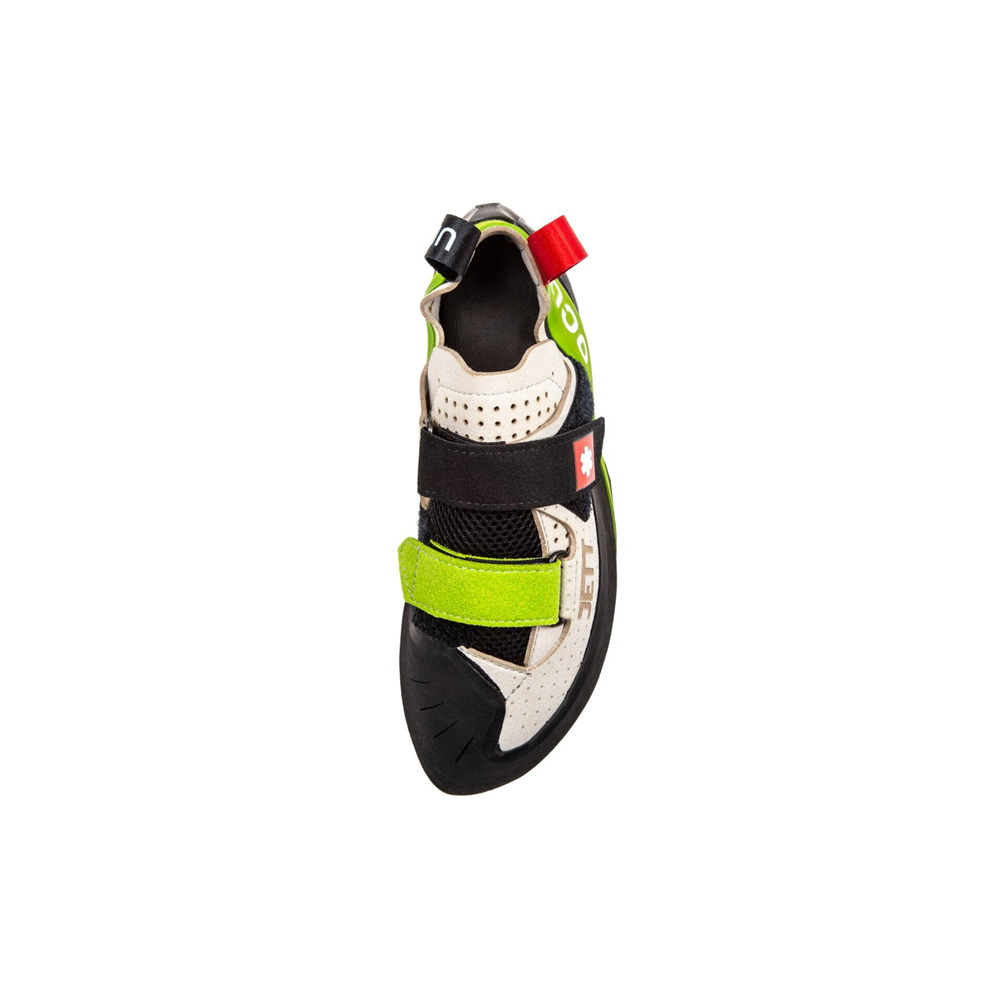 Jett QC to wygodne buty wspinaczkowe dla wszystkich, którzy chcą przekraczać swoje granice. Uniwersalny kształt z umiarkowaną asymetrią i większą objętością w okolicy podbicia i palców, w połączeniu z sztywniejszą podeszwą środkową, zapewnia zarówno stabilność, jak i wsparcie. Podeszwa CAT rubber 1.5 zapewnia przyczepność dokładnie tam, gdzie jest to potrzebne, a podwójne, przeciwległe paski z rzepami sprawiają, że buty Jett QC łatwo się zakłada. Bezszwowa pięta i oddychający język gwarantują komfort nawet podczas dłuższych sesji wspinaczkowych.
