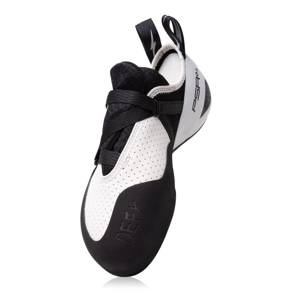 Buty wspinaczkowe Evolv dla początkujących wspinaczy. Średnia miękkość / wszechstronność buta w skali Power Sensitivity Rating PSR: 4