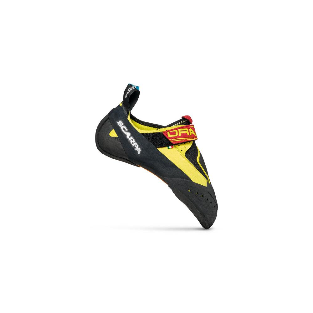 Scarpa Drago to najbardziej czuły but, idealny wybór dla nowoczesnego wspinacza z rozszerzonym gumowym pokryciem zarówno na palcach, jak i na pięcie, idealny do wszystkich możliwości haczenia. Asymetryczny i obniżony kształt ze średnim do wysokiego kątem nachylenia palców dla doskonałej czułości i oddczucia podłoża.