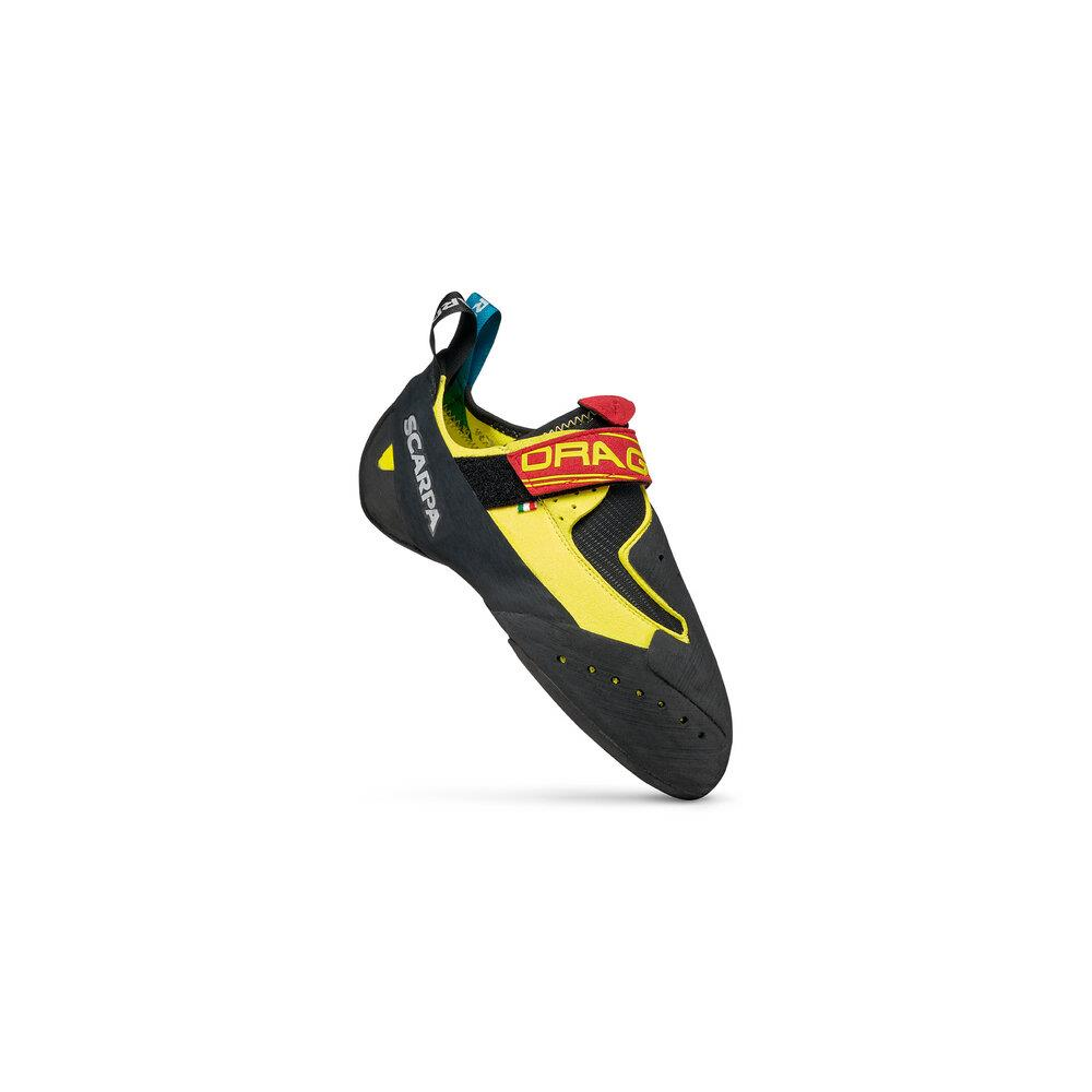 Scarpa Drago to najbardziej czuły but, idealny wybór dla nowoczesnego wspinacza z rozszerzonym gumowym pokryciem zarówno na palcach, jak i na pięcie, idealny do wszystkich możliwości haczenia. Asymetryczny i obniżony kształt ze średnim do wysokiego kątem nachylenia palców dla doskonałej czułości i oddczucia podłoża.