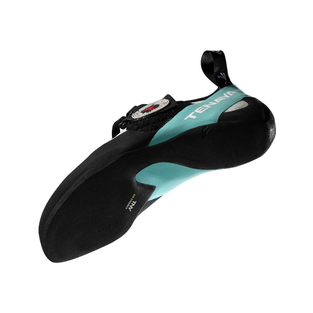 But wyposażono w uznawaną za kultową gumę Vibram XS Grip 3,5mm, używaną przez większość czołowych producentów obuwia wspinaczkowego. Świetnie pracuje ona na tarcie a dzięki małej grubości zapewnia dobre czucie skały. Pozostaje przy tym zaskakująco odporna na zużycie. Tą samą gumą oblany został również czubek buta, ułatwiając podhaczanie palców.