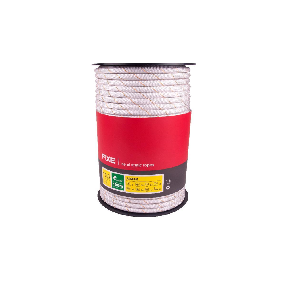 Fixe Climbing Ranger 10,5 mm to wysokiej jakości półstatyczna lina wielozadaniowa, posiadająca certyfikację EN1891:1998 typ A. Doskonale sprawdza się w różnorodnych zastosowaniach, takich jak prace na wysokości, instalacje, manewry pionowe oraz zastosowania sportowe. Wytrzymała i niezawodna, zaprojektowana z myślą o intensywnym użytkowaniu w wymagających warunkach.