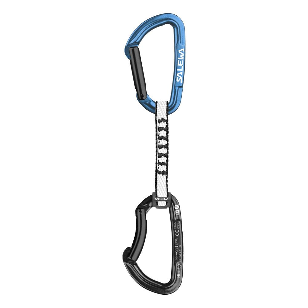 Klasyczny, wytrzymały ekspres od SALEWA dla każdego początkującego wspinacza ceniącego sprzęt wysokiej jakości: połączenie mocnych karabinków Hot, taśmy Dyneema i elementu zapobiegającego obracaniu się dolnego karabinka.