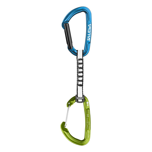 Klasyczny, wytrzymały ekspres od SALEWA dla każdego początkującego wspinacza ceniącego sprzęt wysokiej jakości: połączenie mocnych karabinków Hot, taśmy Dyneema i elementu zapobiegającego obracaniu się dolnego karabinka.