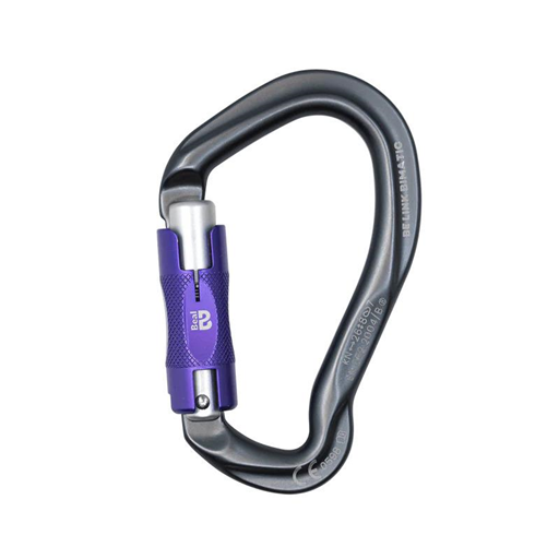 Asymetryczny karabinek aluminiowy do lonży lub do wpinania do przyrządów asekuracyjnych. Asymetryczny kształt sprawia, że przyrząd zajmuje pozycję na końcu łącznika.