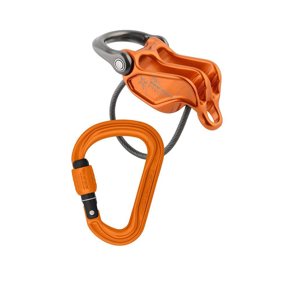 Przyrząd robiony jest w Walii z najlepszego aluminium, ma ruchome oczko stanowiskowe i nazywa się DMM Pivot! Na rynku jest wiele przyrządów, które przeznaczone są do wspinaczki wielowyciągowej. Od tradycyjnych kubków, wyróżnia je przede wszystkim dodatkowy punkt wpięcia z tyłu przyrządu, dzięki któremu możemy zamontować je na górnym stanowisku i w ten sposób wygodniej wybierać linę. Największym problemem takiego układu jest jednak podawanie luzu oraz opuszczanie wspinacza. W większości przyrządów, po ich zablokowaniu, trzeba użyć naprawdę dużej siły, żeby odblokować linę pod obciążeniem. Pivot eliminuje tą niedogodność, wprowadzając jeden bardzo prosty, ale i sprytny, patent.
