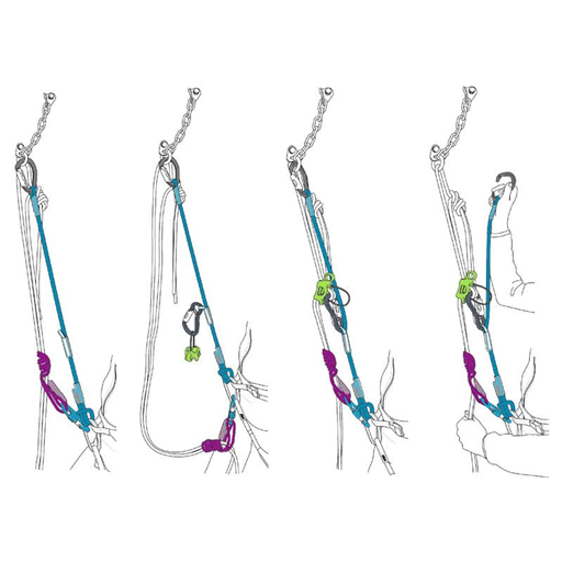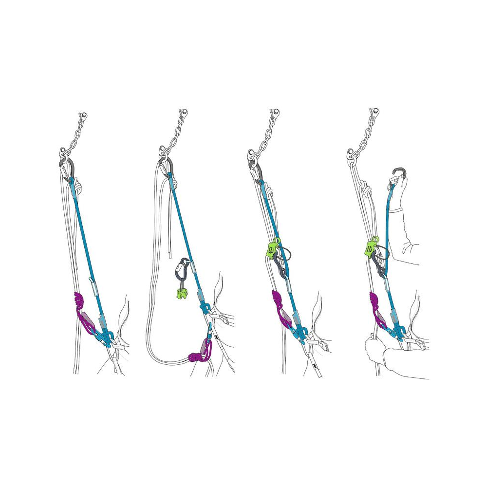 Kompletny zestaw do zjazdu (wycofu) na linie można skonfigurować z