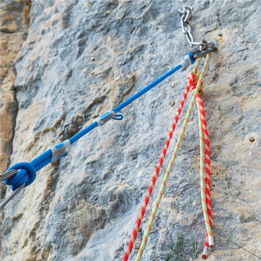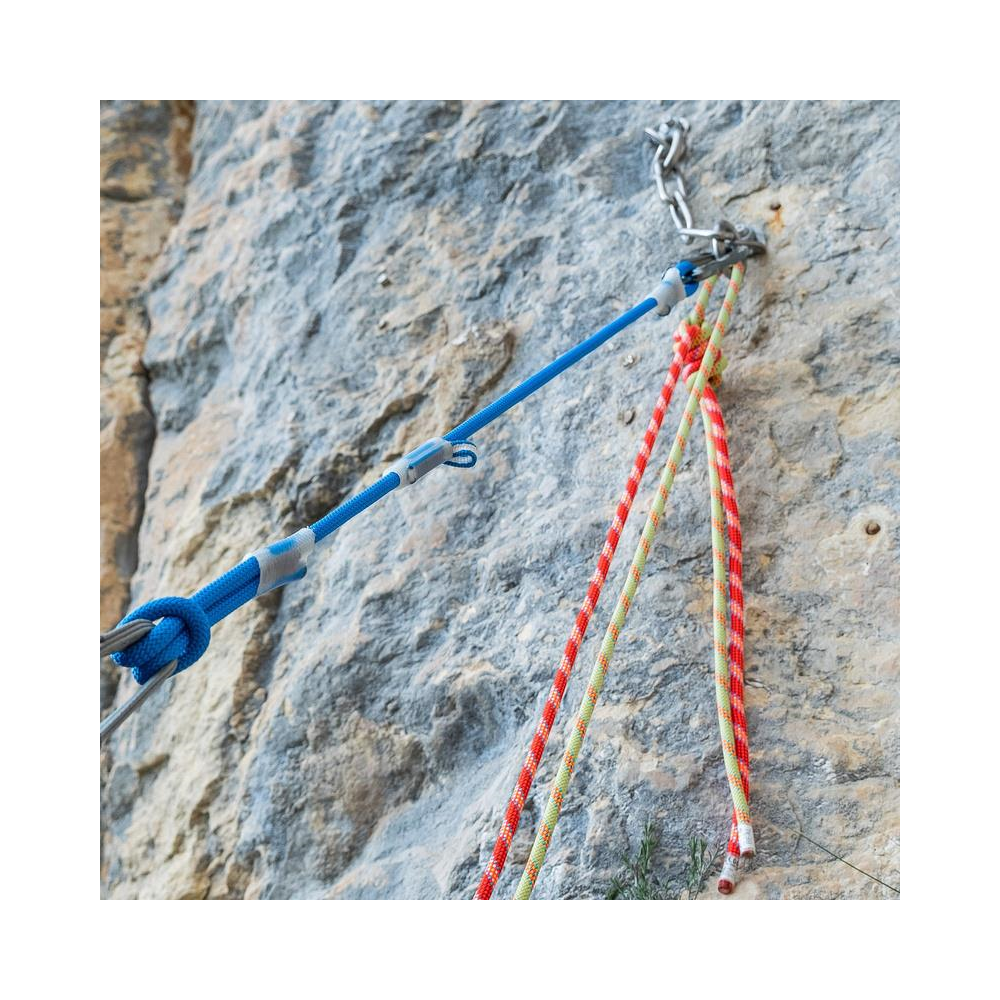 wpięcia do uprzęży znajduje się zszyta pętelka z Dyneemy, do której wpinany