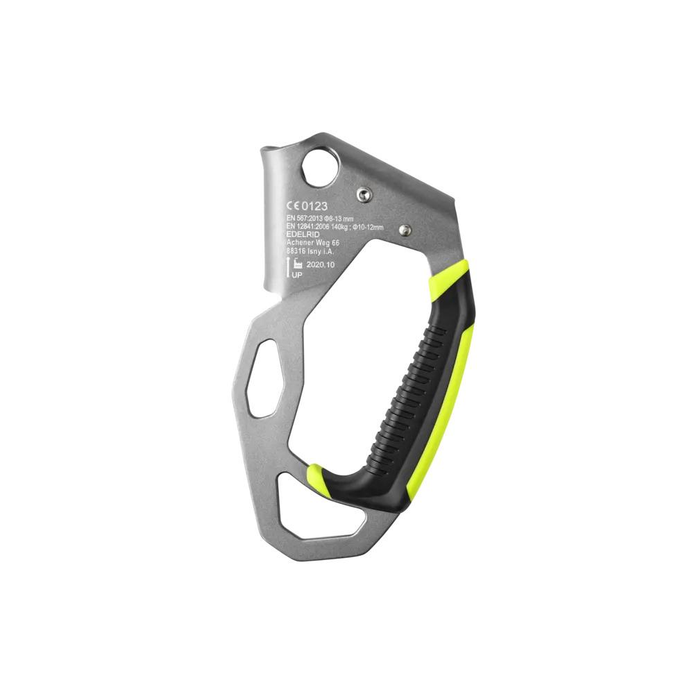Ergonomicznie ukształtowany ręczny przyrząd zaciskowy do wygodnego podchodzenia na linie bez zmęczcenia dłoni i nadgarstka. Zakrzywiona konstrukcja zwiększa komfort i zmniejsza tarcie w systemie. Duże oczko pozwala na wpięcie kilku karabinków; mniejsze oczko nieco wyżej jest idealne do założenia karabinka z bloczkiem Axiom. Ponadto druga ręka może wygodnie chwycić HAND CRUISER na górze podczas wspinaczki.