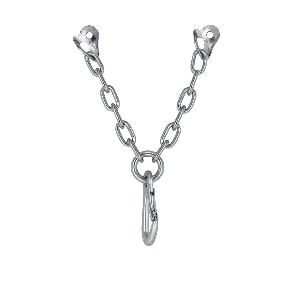 Układ w kształcie litery V umożliwia lepsze rozłożenie obciążeń pomiędzy punktami kotwiącymi, co przekłada się na większą stabilność całego stanowiska. Trzyogniwowy łańcuch ogranicza liczbę punktów krytycznych i zwiększa trwałość przy intensywnym, codziennym użytkowaniu — szczególnie w halach wspinaczkowych i obiektach szkoleniowych.