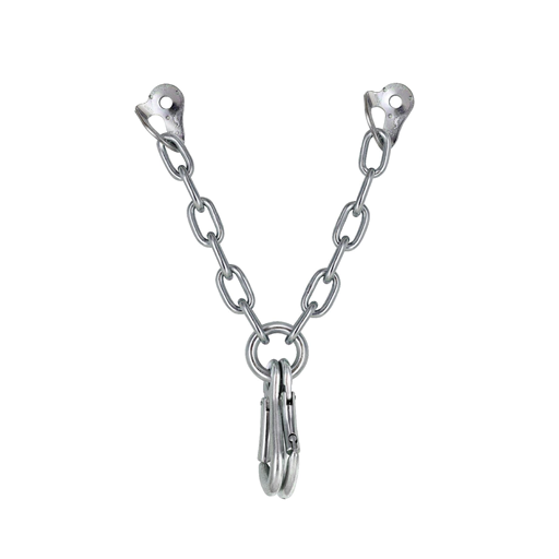 Całość wykonana jest z ocynkowanej stali Ecotri, która dobrze znosi intensywne użytkowanie w halach wspinaczkowych, centrach szkoleniowych oraz instalacjach sportowych. Trzyogniwowy łańcuch oraz spawane pierścienie ograniczają liczbę punktów krytycznych i zwiększają trwałość stanowiska przy długotrwałej eksploatacji.