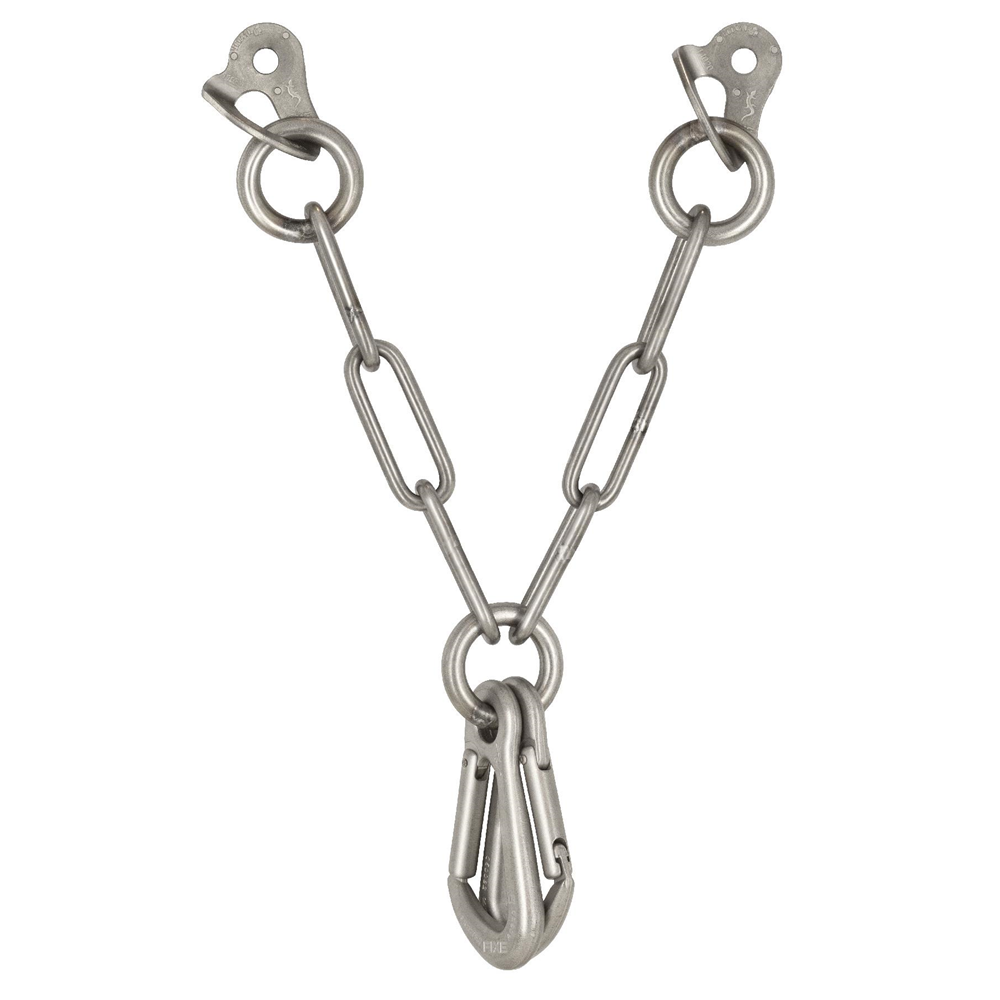 Zastosowanie dwóch karabinków Draco z zamkiem Keylock znacząco ułatwia obsługę stanowiska i ogranicza zużycie sprzętu. Trójogniwowy łańcuch oraz spawany pierścień poprawiają rozkład obciążeń i redukują liczbę newralgicznych punktów. To rozwiązanie stworzone do intensywnej, długoterminowej eksploatacji. Produkt zaprojektowany i wyprodukowany w Hiszpanii.