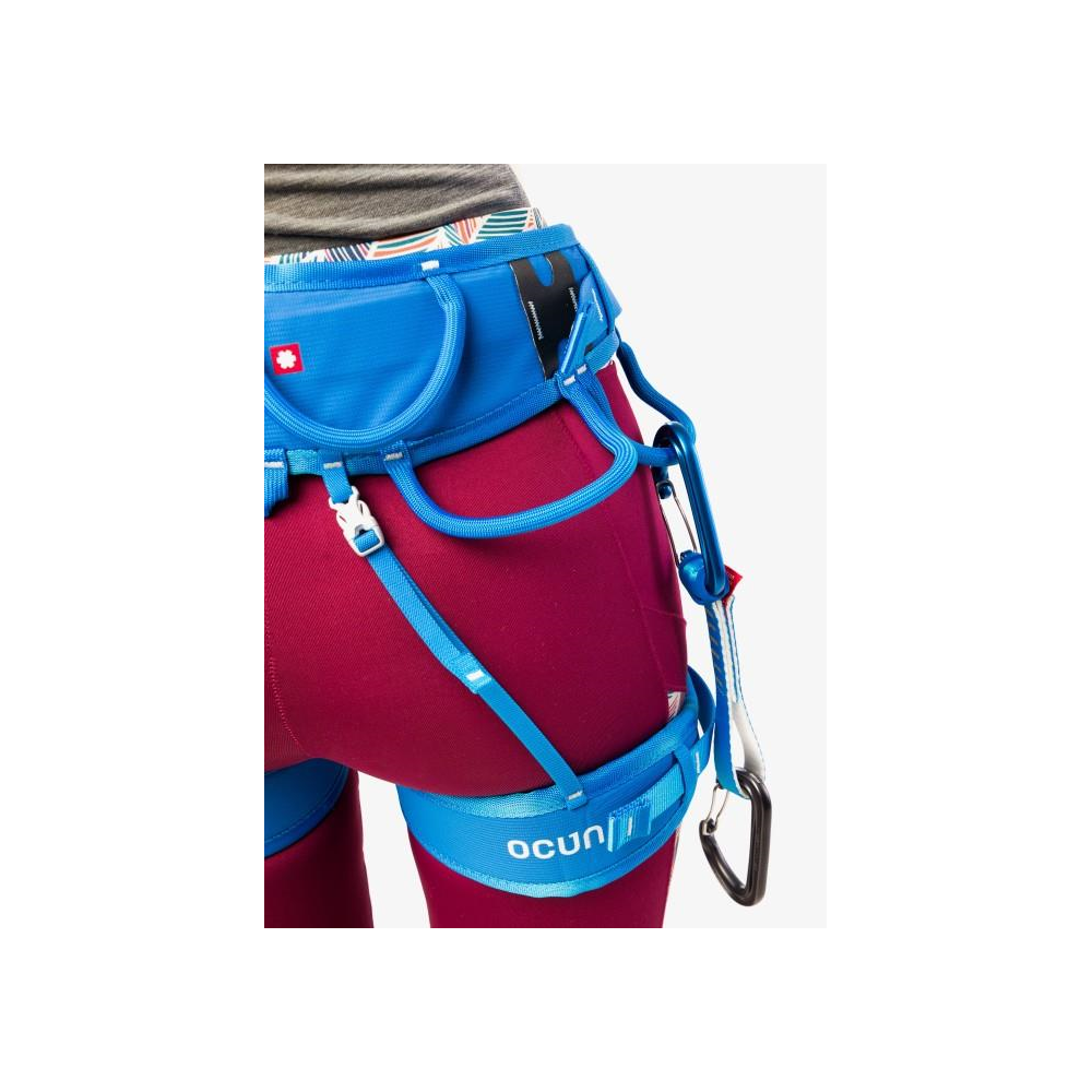 Zapinanie uprzęży umożliwiają 4 szybkie klamry, których obsługa jest łatwa, a działanie bardzo precyzyjne. Konstrukcja będzie się łatwo dopasowywała do Twojej sylwetki i w prosty sposób zmodyfikujesz ją, by odpowiadała Twoim preferencjom. Pas i pętle udowe nie wymagają mozolnego przeplatania taśmy przy każdym zakładaniu. Miękka wyściółka po wewnętrznej stronie poprawia komfort noszenia. Wzmocnienie znajdujące się na pasie biodrowym oraz pętli łączącej nogawki udowe minimalizuje ryzyko pomyłki w trakcie wpinania. Ergonomiczne rozmieszczenie noszonego ze sobą sprzętu umożliwiają szpejarki umiejscowione na obwodzie. Twist Quattro posiada również ruchomy pas oraz 2 miejsca do wpięcia karabinkó sprzętowych typu Caritool.