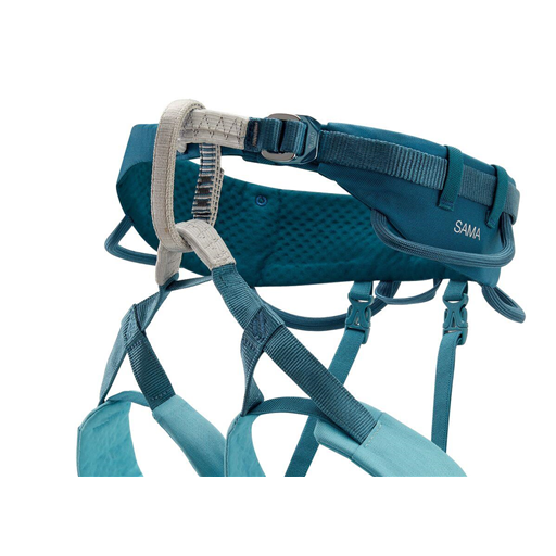 Uprząż SAMA jest przeznaczona do wspinaczki sportowej zarówno na ściance wspinaczkowej jak i w skałkach. Elastyczne tamy udowe pozostają cały czas dopasowane, a miękki i zwężający się z przodu pas zapewnia bardzo dużą swobodę ruchów. Cztery uchwyty sprzętowe oferują wystarczająco dużo miejsca na cały niezbędny sprzęt, w tym do wspinaczki wielowyciągowej.