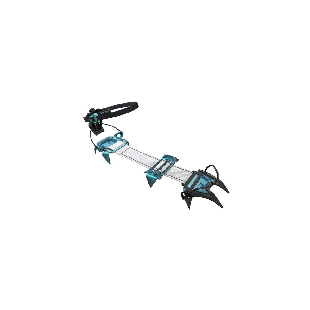 Innowacyjne rozwiązanie, które zadziwia niską wagą oraz kompaktowym charakterem. Konstrukcja oparta o elastyczny, tekstylny łącznik, dzięki któremu całość składa się do niewielkich rozmiarów, mieszcząc się w worku dołączonym do zestawu. To połączenie trzech segmentów, przedniego stalowego oraz kolejnych aluminiowych. Tekstylny pasek, pozwala na ułożenie centralnego segmentu w optymalnej pozycji w zależności od potrzeb oraz obuwia. Całość tworzy maksymalnie techniczną konstrukcję gwarantującą świetną przyczepność podczas poruszania się w lodowym terenie. Możliwość skonfigurowania raków na wersję automatyczną lub półautomatyczną.
