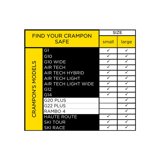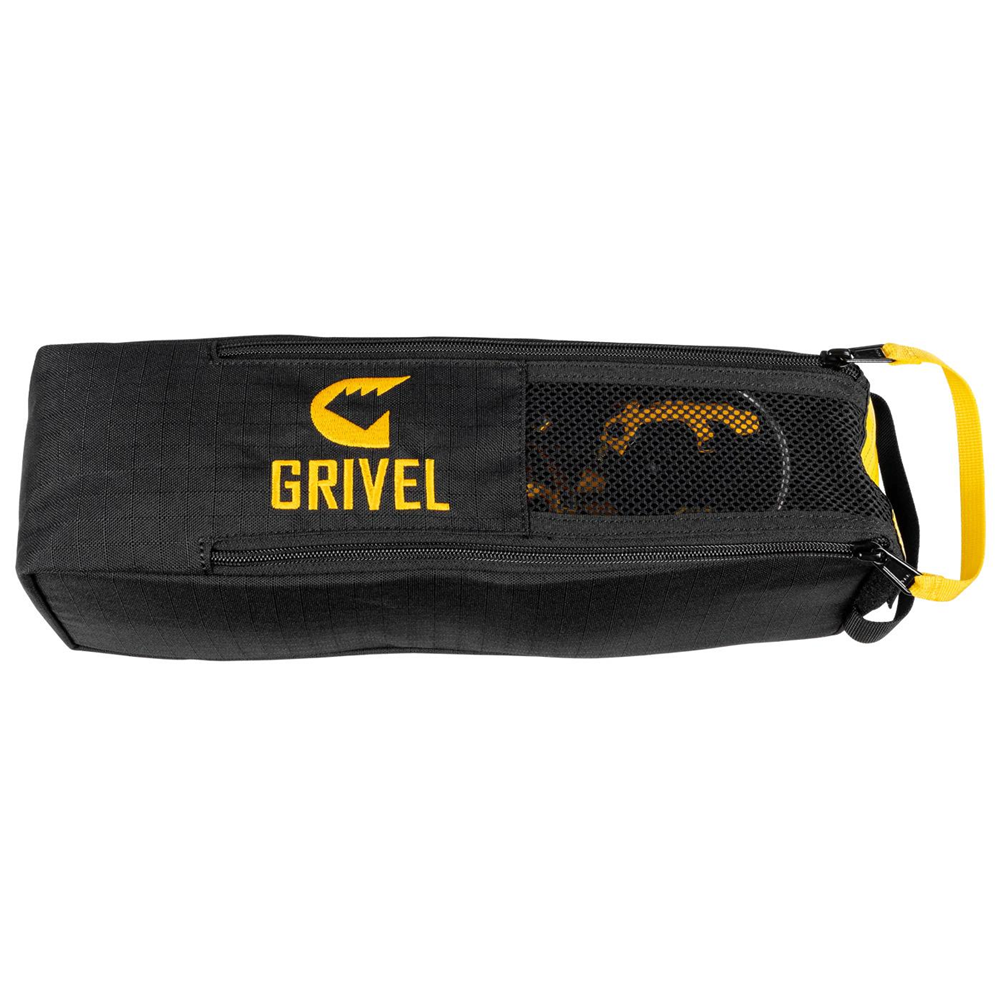 Grivel Crampon Safe to worek na raki wykonany z materiału odpornego na przecięcia, przetarcia i przebicia. Posiada duże podwójne zamknięcie na zamek błyskawiczny oraz siateczkę z jednej strony, która przyspiesza suszenie raków. Wzmocnione dno chroni zawartość plecaka przed ostrymi końcówkami raków. Dostępny w dwóch rozmiarach: mniejszym i większym.