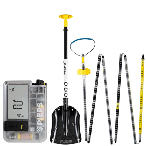 LAWINOWE ABC PIEPS SET MINI IPS składające się z detektora Mini IPS, łopaty T640 Telescopic oraz sondy Alu 260 Sport.
